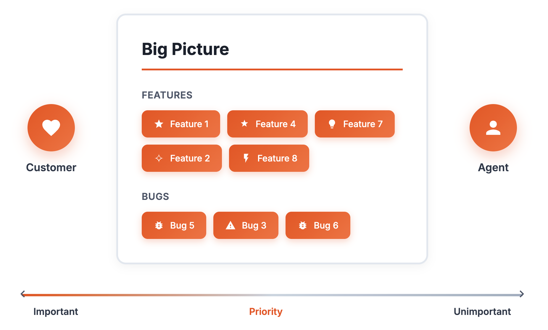 Example: An agent coordinates with the customer and talks about which features or bugs currently have the highest priority for them. This helps the customer set a clear order for their requests and keep focus on the most urgent tasks.