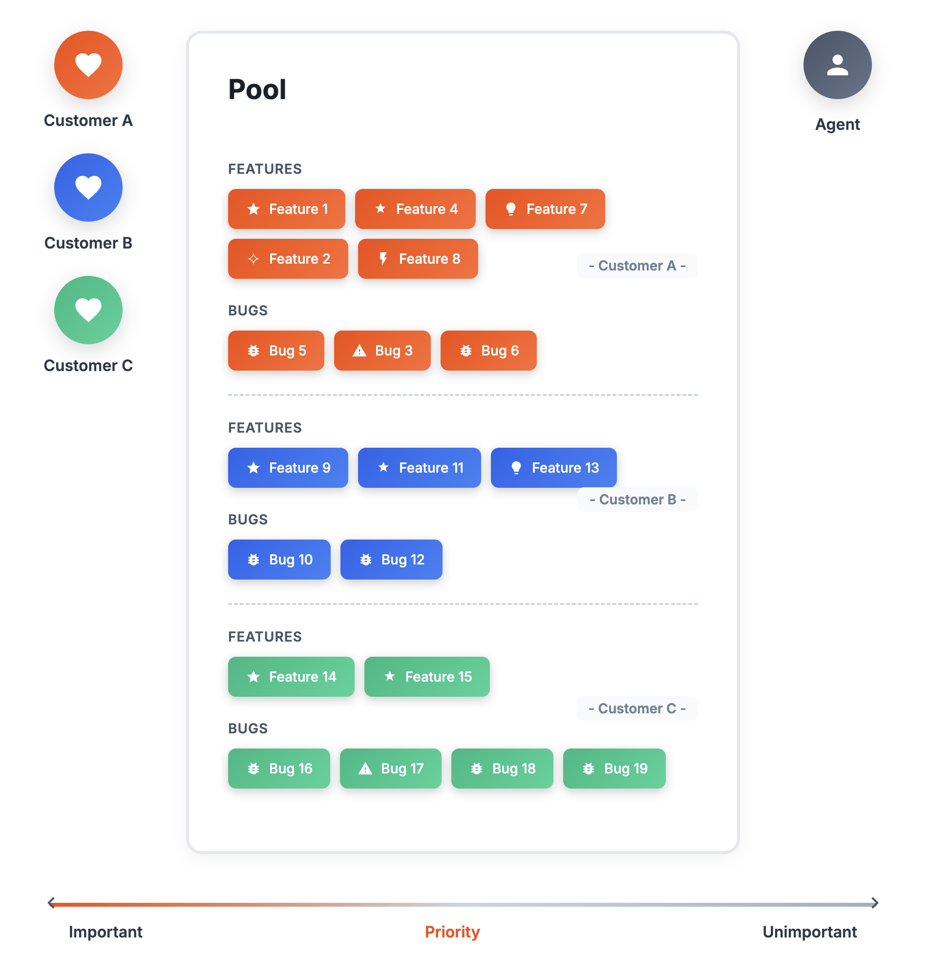 Goal: Pools let the agent prioritize across projects and make sure the most important tasks get done first, so customer satisfaction and company value are at their highest.