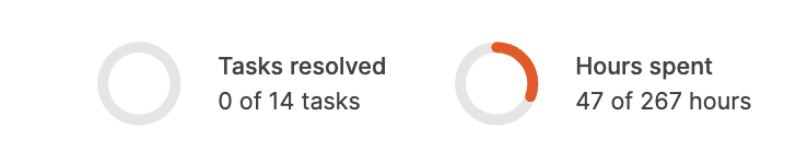 Under each section, you'll see a bar showing how many tasks are done and how much time has been used compared to the estimate.