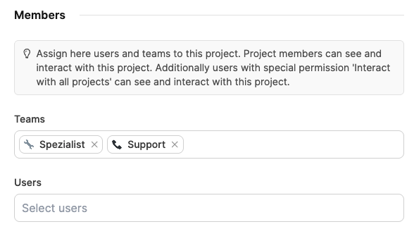 Select users: Add single team members who are allowed to create, edit, or log time on tasks.