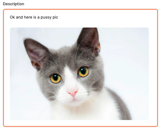 Inserts an image into the description, such as a screenshot, diagram, or UI documentation.