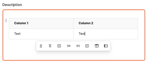 After inserting a table, a toolbar will pop up with icons to help you manage rows, columns and headers.