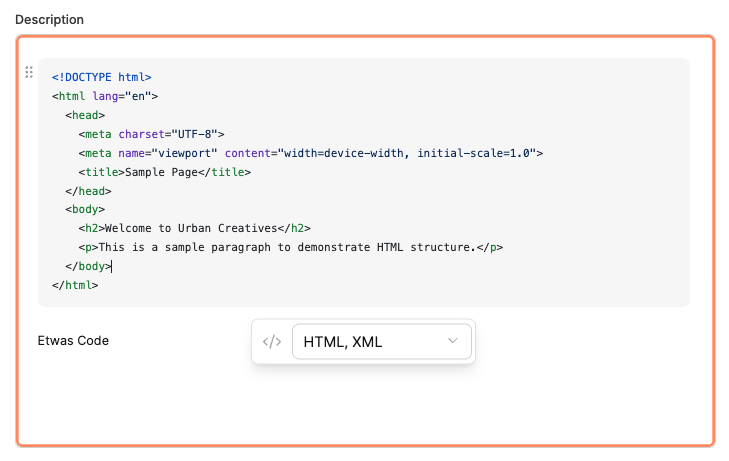 It’s especially useful for dev teams that want to include code samples, log outputs, or API structures right within a task – clear, color-coded, and with syntax highlighting.