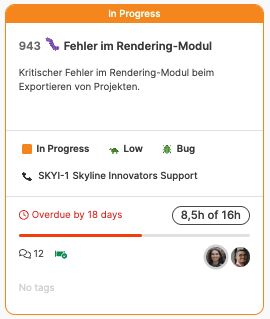 These details show up right away in the ticket card and in the big picture view, like 8.5h of 16h.