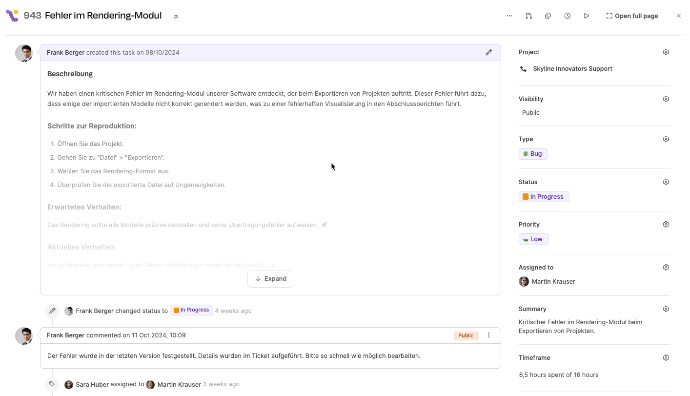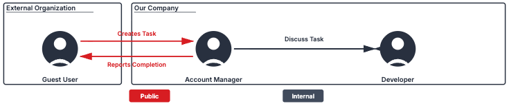 The comment or status is visible to guest users. Typical examples: progress updates, answers to customer questions, or telling someone their task is done.
