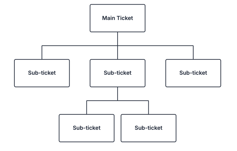 Each subtask works just like its own ticket, with its own description, assignee, priority, and status.