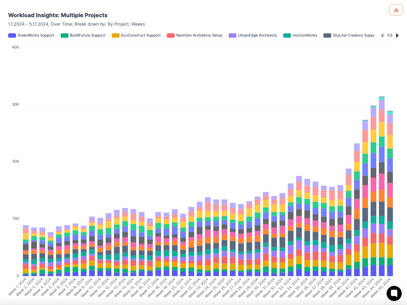 With Workload Insights you can instantly see if your team is keeping up with the current workload. You'll spot which projects are particularly busy and where tasks are piling up. The analysis helps you manage resources, adjust priorities, and make sure the team’s workload is well balanced.
